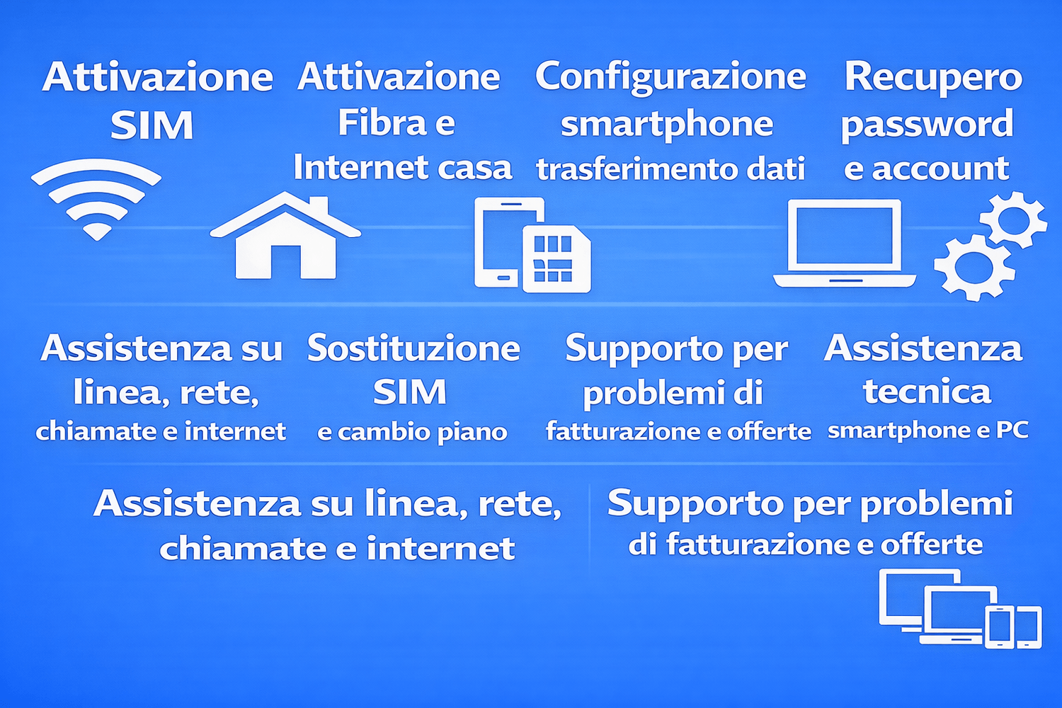Attiviamo offerte, risolviamo problemi e ti seguiamo anche dopo.